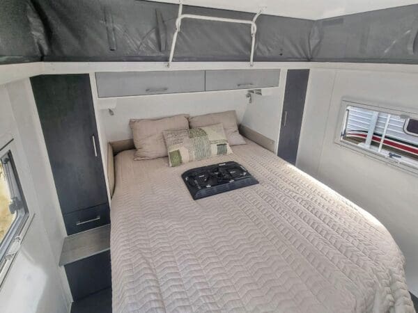 JUST TRADED AND IN FANTASTIC CONDITION. Be quick to secure this. Sleeps up to 6. 12 and 240 volt system. 3 way fridge, Large kitchen / Prep Area. Bed end Flys. inside block out blinds. Side Awning. much more,