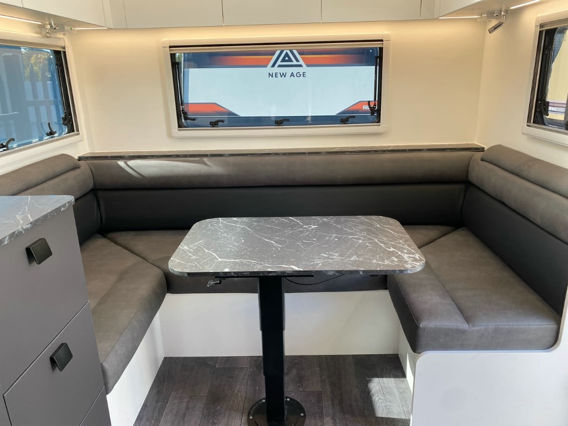 Step into luxury touring with the Oz Classic 22 Club Lounge — New Age’s flagship in comfort and design. Built with full composite construction (walls, roof, and flooring – no timber), this van is as solid as it is stylish, and sits on a hot-dipped galvanized 6 chassis and A-frame, ready for long-haul getaways.