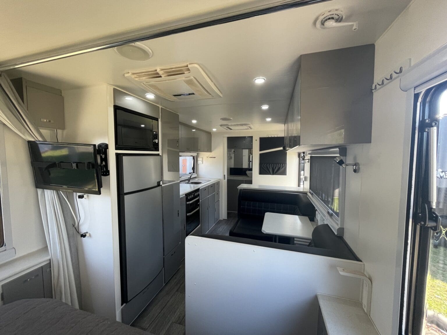 QUALITY AUSTRALIAN MADE COUPLES CARAVAN THAT HAS ALL THE HOME COMFORTS OF COOKING WITH A FULL OVEN, AIRCON, FRIDGE, SEPARATE SHOWER AND TOILET, WASHING MACHINE, ISLAND BED, CAFE LOUNGE, SOLAR AND A NEAR NEW ANNEXE. SAVE HEAPS ON A NEW VAN AND GET A VERY STYLISH USED ONE!!